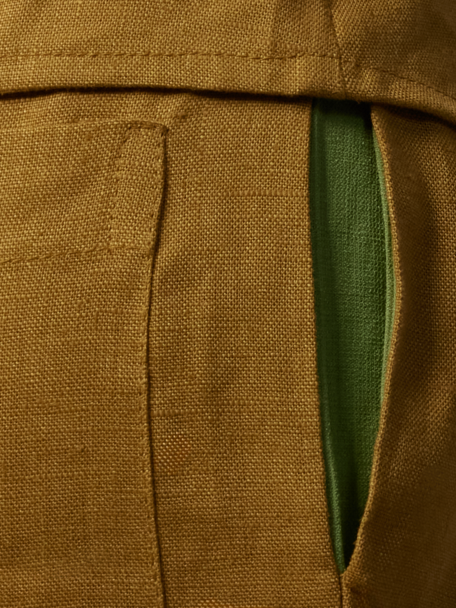 Calça em construção alfaiataria, em linho puro (100% linho). Bolsos laterais embutidos e dois bolsos traseiros grandes. Prega na parte da frente da calça e passantes. O abotoamento por zíper e colchetes conferem um ar mais refinado e limpo à peça. Modelagem da calça é mais reta porém ampla, estilo pantalona. Forma o conjunto perfeito com nosso top Amanda feito no mesmo tecido e cores.